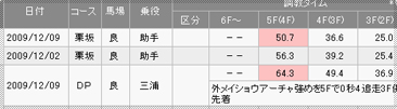 | 調教タイム(競走馬毎バックナンバー)サンプル |