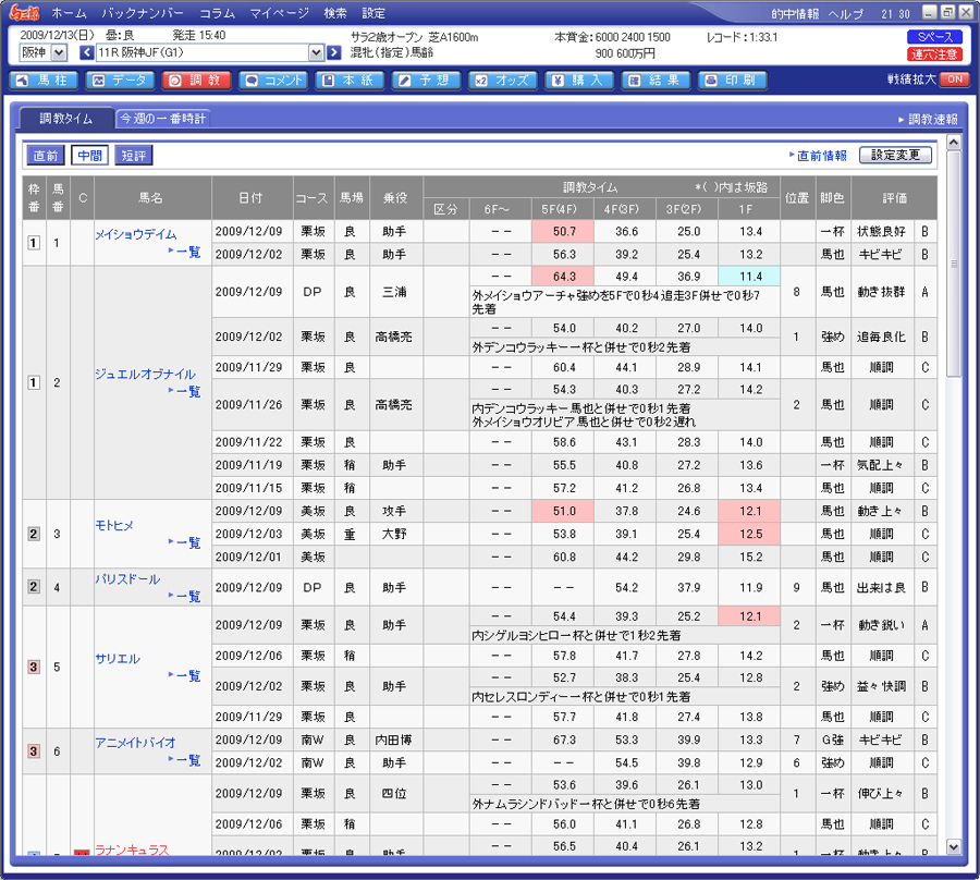 あとは調教タイムと評価を信頼しています 有力馬から人気薄でも 好調教の馬や高評価の馬へ流して馬券をとれることもあり助かっています