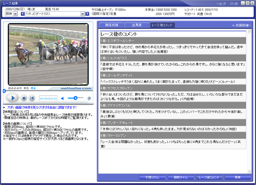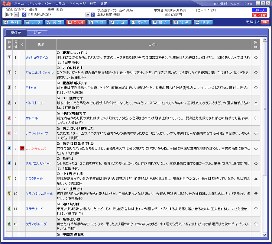全レースの厩舎関係者コメントが見られるのが良い。コメントの為に新聞を買っていたがその必要がなくなった